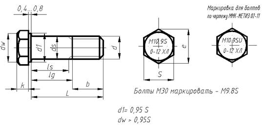 Класс прочности: М16-М27 -10.9, М30-9.8.